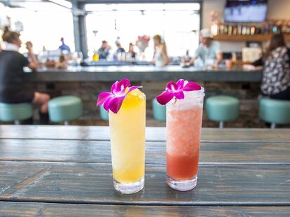 The Crazy Joe Davola is probably the most traditional Caribbean-style cocktail Ive had at Miss Bs combining spiced rum cold-brewed coffee banana liqueur coconut crème and pineapple. The popular restaurant draws inspiration from the Hawaiian-style cabana huts that lined this beach at the turn of the century and Miss B the cheery fictitious character used to promote the area as a residential community. We adore their Capri Son because adulting is.